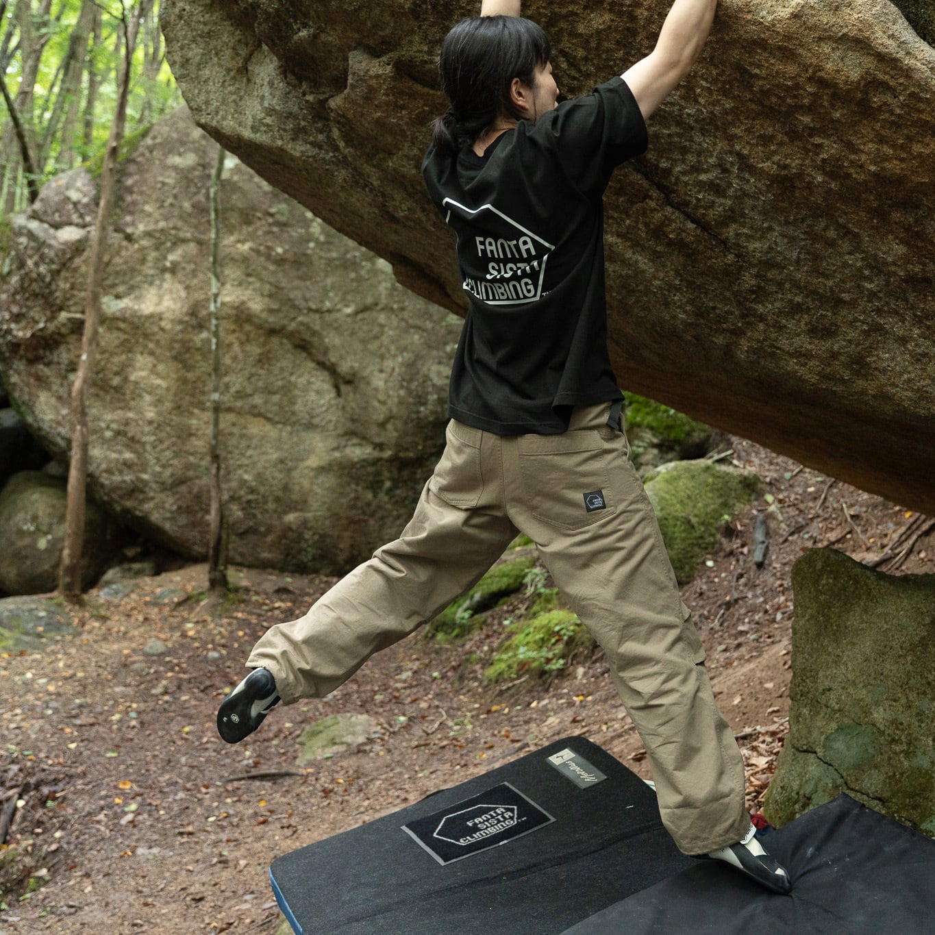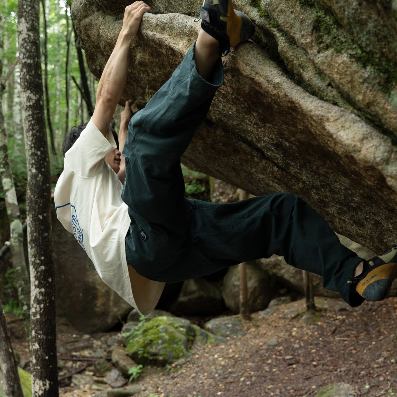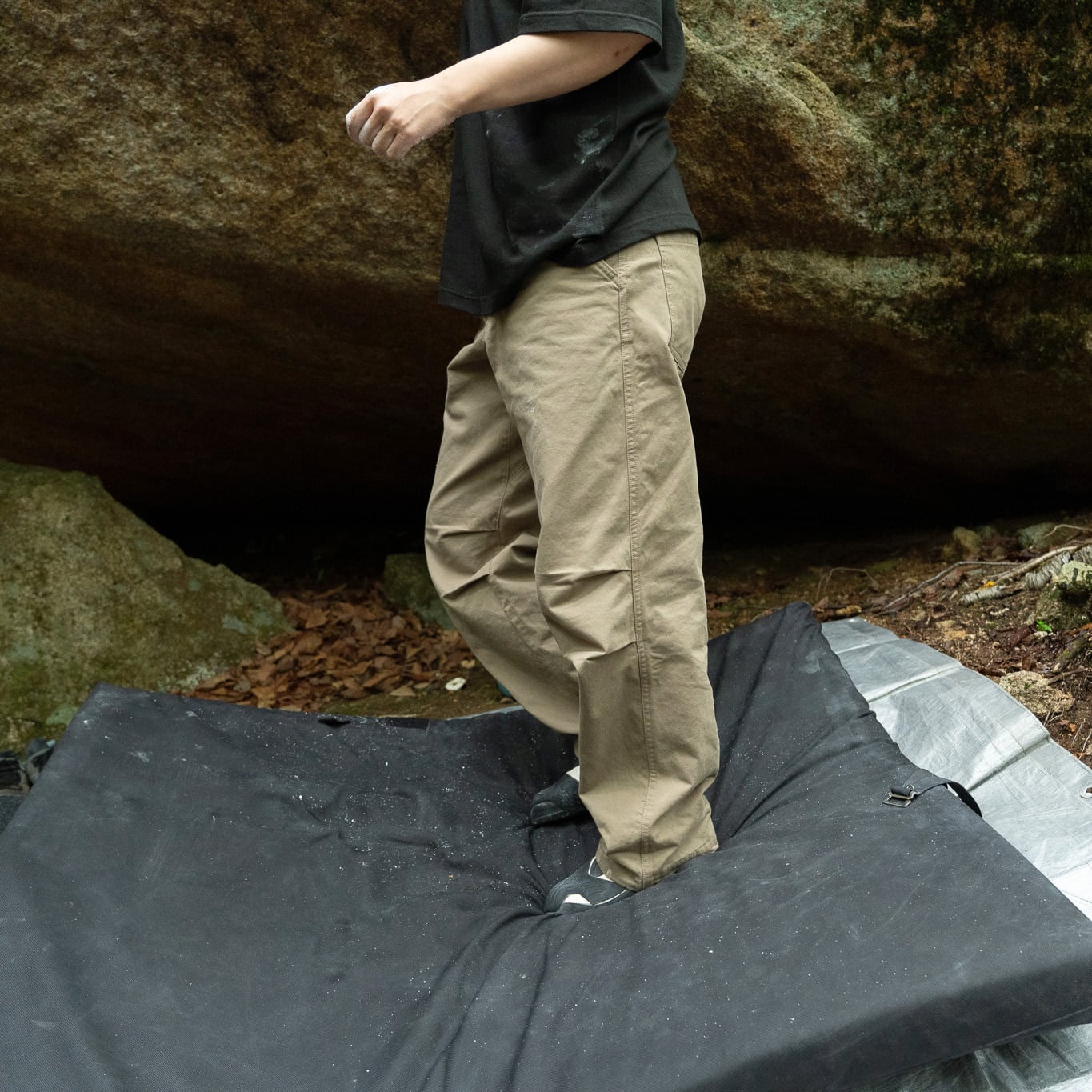 森を思わせる温かみのあるアースカラーは、岩場や自然の風景にすっと馴染み、外岩でのスタイルにも自然と溶け込みます。