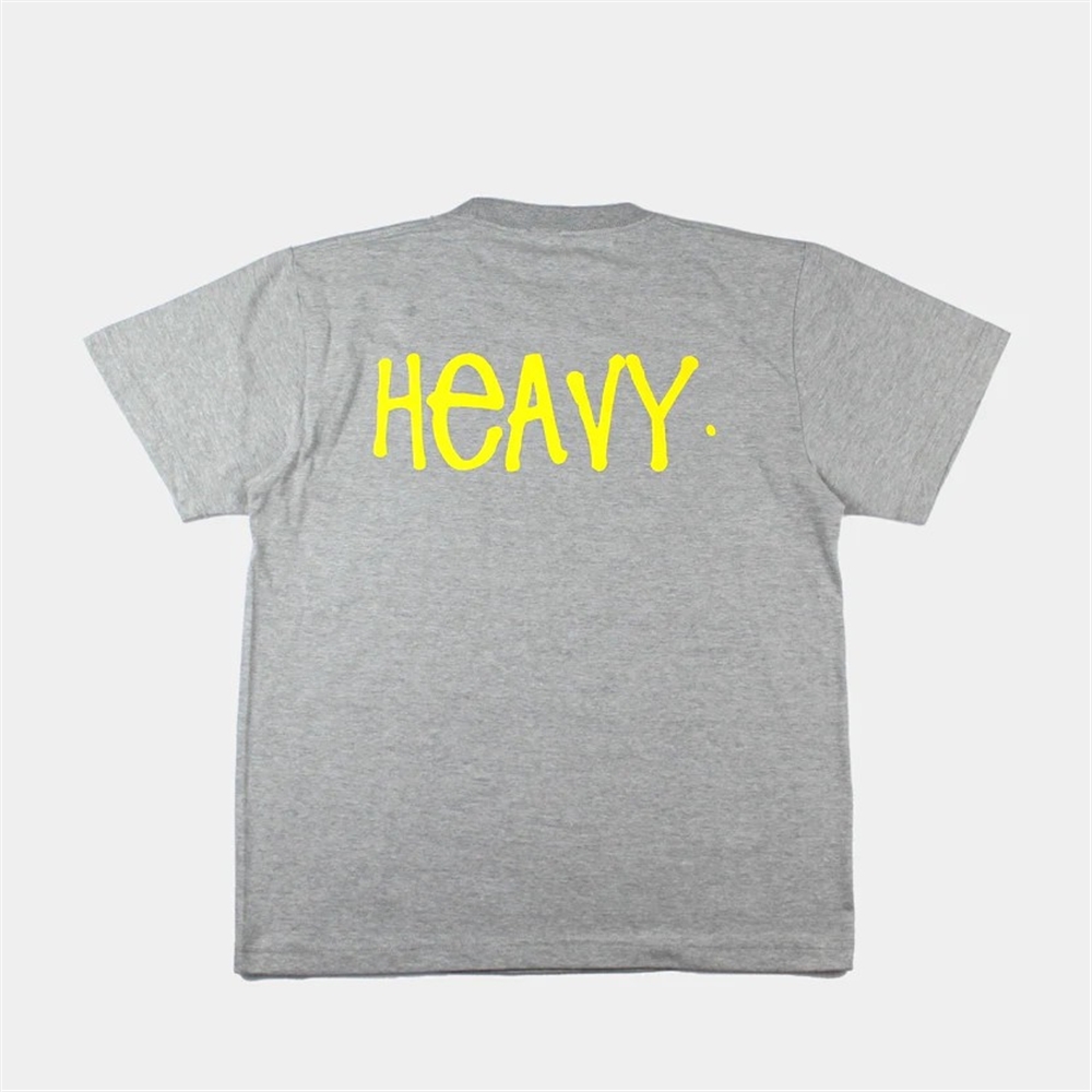 - 背中に大胆に、そして胸元にはさりげなく手描き風のロゴをプリントした、遊び心溢れるTシャツです。グレー × イエローは、柔らかなベースカラーに鮮やかなロゴが映える、ポップでカジュアルな配色。
