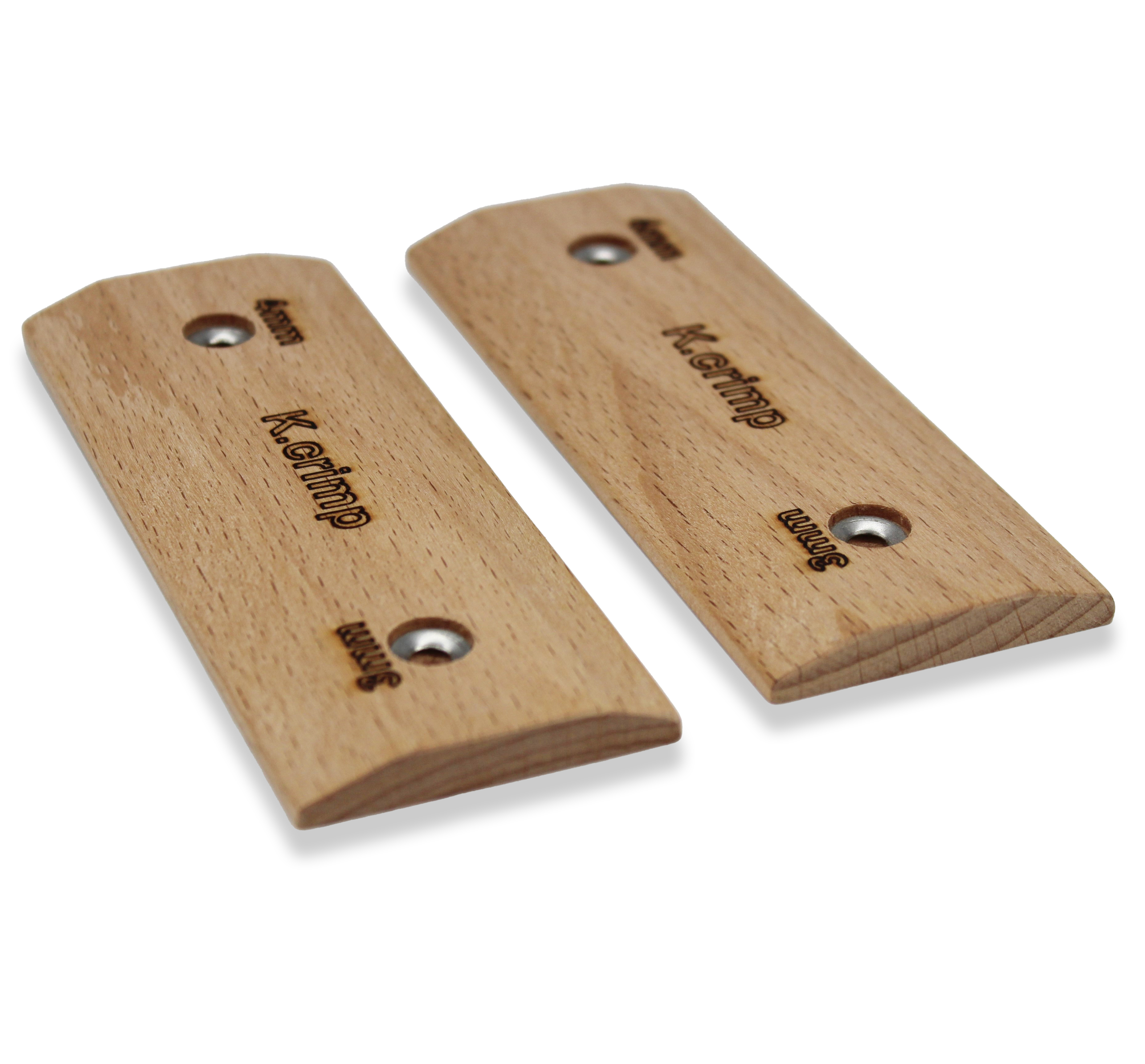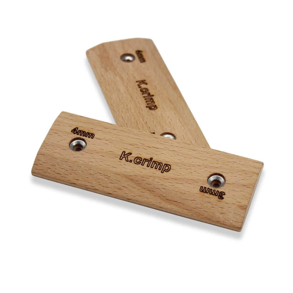 K.crimpのマイクロエッジは7mmのベースプレートにテーパー加工を施してホールディングトップを作ることによって本体強度を確保しています。また、ビスの皿穴部分に座金を組み込み、繰り返しの付け外しによる割れのリスクを低減。素材も強靭で経年劣化の少ないブナを使用しているので長期的なトレーニングにも対応します。