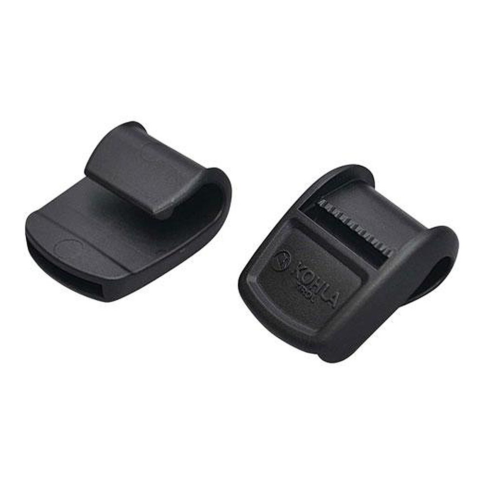 クライミングスキンのテール側を固定式にするために、エラスチックストラップと組み合わせて使うプラスティック製のテールクリップ。
