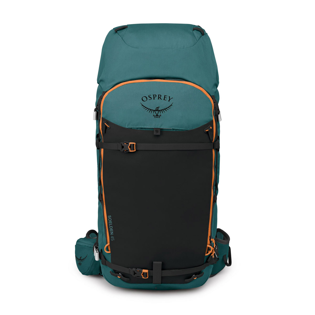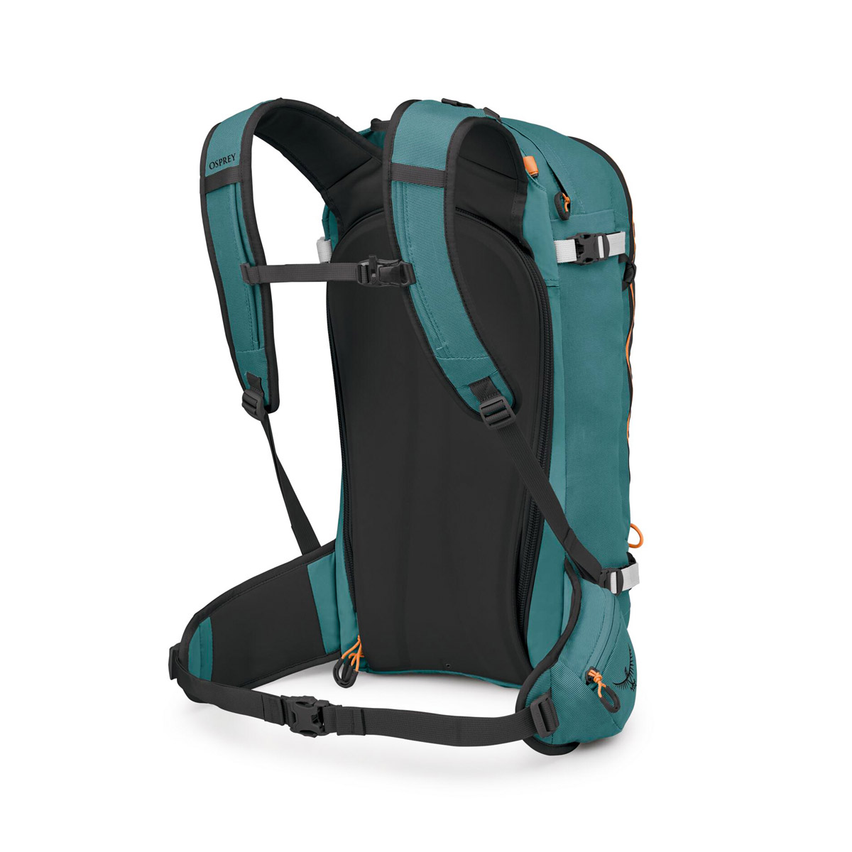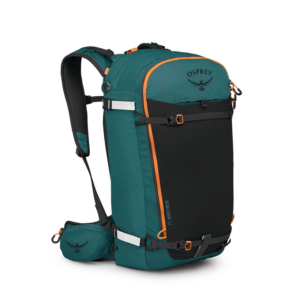 スキーは斜め掛けやAフレームでも装着可能、もちろんスノーボードも装備可能。アバランチポケットには目立つカラーのジッパーを採用し、緊急時でもアバランチギアへの直感的なアクセスが可能です。ヘルメットキャリーやスキー/スノーボードアタッチメントポイントなど、雪山に特化した機能を備えています。