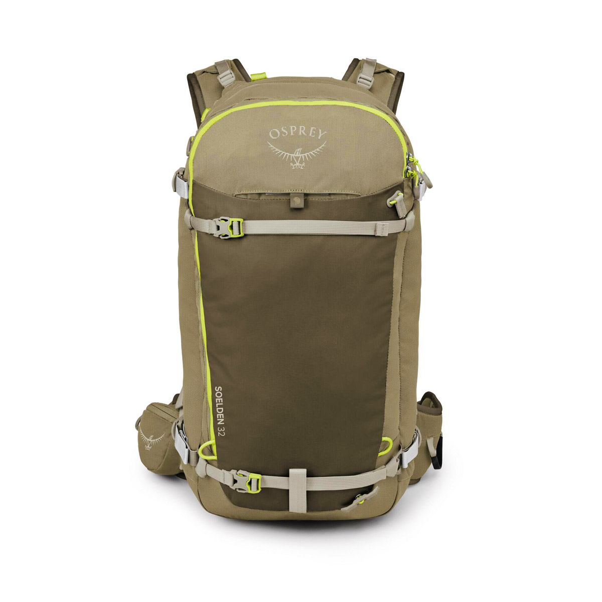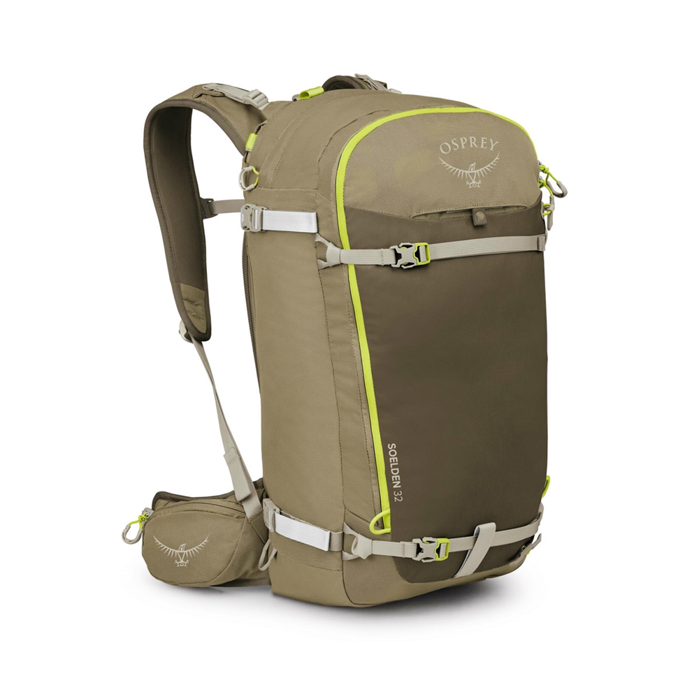 スキーは斜め掛けやAフレームでも装着可能、もちろんスノーボードも装備可能。アバランチポケットには目立つカラーのジッパーを採用し、緊急時でもアバランチギアへの直感的なアクセスが可能です。ヘルメットキャリーやスキー/スノーボードアタッチメントポイントなど、雪山に特化した機能を備えています。