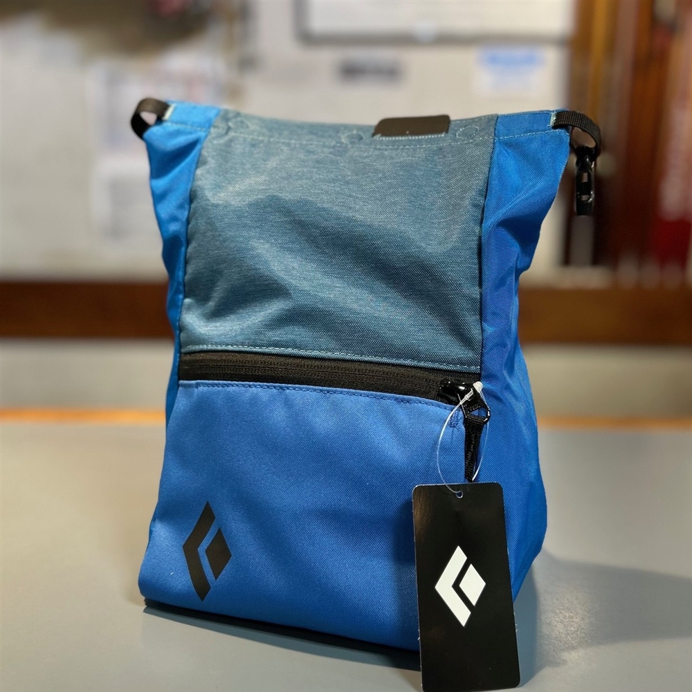 ブロックチョークの収納やセッションに適した据え置き型チョークバッグ。ロールトップ/マグネットクロージャーを備え、しっかりと密閉できます。