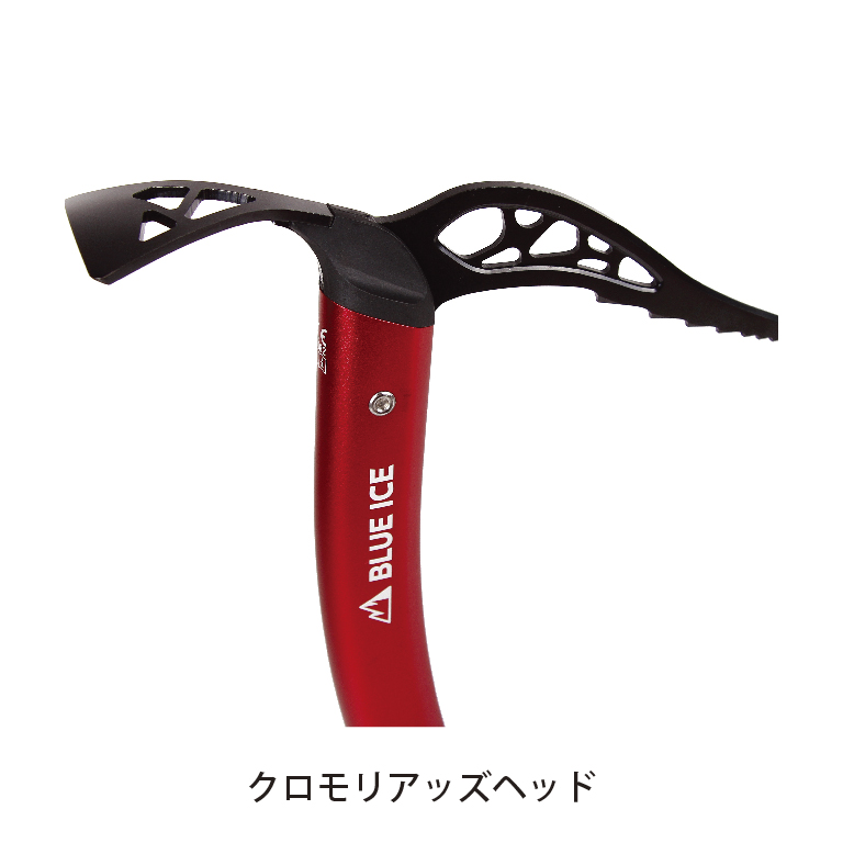 ブランド ブルーアイス 長さ 49cm 重量 330g ピックタイプ 1 シャフトタイプ 1 認証 CE/EN13089、 UIAA152 素材 クロモリブデン鋼、ステンレススチール、アルミ、耐衝撃ナイロン