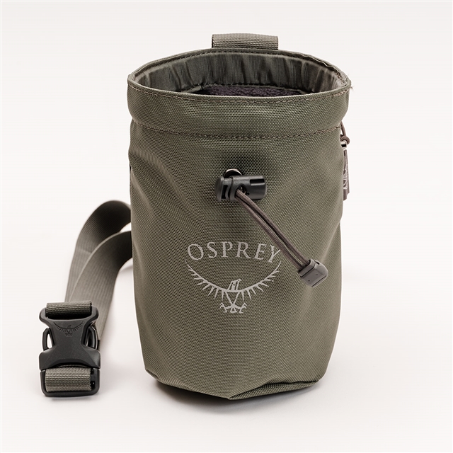 - シンプルながら耐久性のあるチョークバッグ。開閉が容易なクロージャー、調節可能なウェブベルト、ジッパーポケット付き。