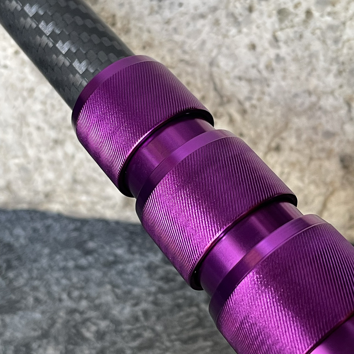 ブラシ部は天然黒豚毛を使用したナイロン製、可変部はナイロン製、伸縮柄はアルミニウムスクリューロック式カーボンファイバーポールです。