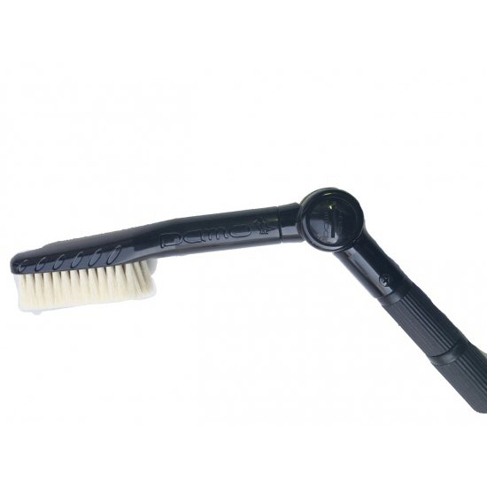 ブラシ部は天然白豚毛を使用したナイロン製、可変部はナイロン製、伸縮柄はアルミ製ポールです。