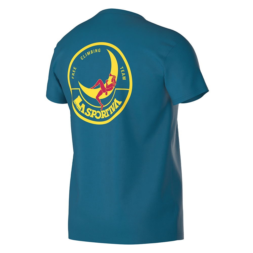 クライミング・オン・ザ・ムーンのオーガニックコットンTシャツであなたのワードローブを活気づけ、クライミングの黄金時代を再現しましょう。