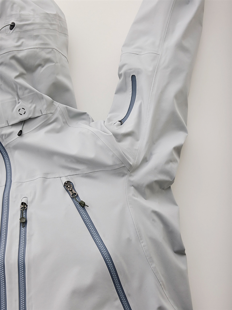 登場以来14シーズンを経ても基本コンセプトを変えることなく、毎年細部のアップデートによって成熟を重ねてきたフラッグシップ。耐久性に優れた高強度ナイロンを基布に使用した防水通気素材「Tasma」は完全防水性と通気性を両立し、ナイロン素材ながら十分なストレッチ性があります。胸元から脇腹まで斜めに大きく開くアングルベンチレーションは開閉が容易で、行動中も効果的な換気が可能。また、使い勝手のいいインナーメッシュポケットをサイズアップし、グローブ着用時の出し入れがスムーズになりました。体の可動域を確保した独自のカッティングは登りも滑りもノーストレスです。型番 TB233-01M Size Fabric Tasma Weight 585g(Size M) <ブランド紹介>ティートンブロス (Teton Bros.)
