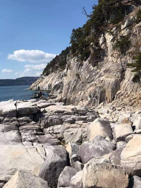 海岸沿いには魅力的な花崗岩が顔を覗かせています。取りつきに降りられるかが第一核心。