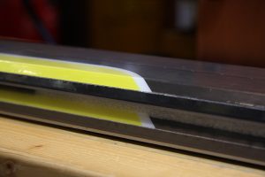 このスキーもこの繊維技術があるからこそ成り立っているのですが、他にも上面キャップと下側にサイドウォールを配置したサンドイッチ型のハイブリット構造(K2ではこれをハイブリテックと呼んでいる)を用いているという特徴があげられます。スキートップからテールまでカバーするキャップ構造がスウィング時の軽さを生み出し、センター部分に配置されたサイドウォールが高いエッジコンタクトを演出するというそれぞれのメリットを組み込んで形にした訳です。